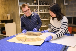 Anthony Edwards examines Arabic-language books and letters in Washington and Lee’s Special Collections with his Arabic 111 students.