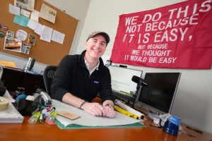 “The axe is special to me. It came from the first full-length play I ever directed, ‘Blood Relations,’ about Lizzie Borden. My cast gave it to me at the end of the show, and they’d all signed it and even put fake blood on it. Two of those cast members have since passed away, so it’s deeply meaningful to me. My department also voted my office the best place to hide during a zombie invasion because of it.”