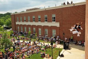 Jenefer Davies, W&L visiting assistant professor of dance, will be recruiting students across campus for an aerial dance performance on the side of 40-foot high Wilson Hall.